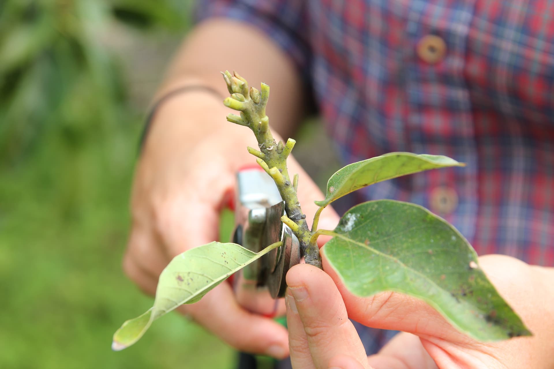In our avocado budwood we are looking for mature buds along the stem of avocado branches. We use both side and terminal buds when we graft.