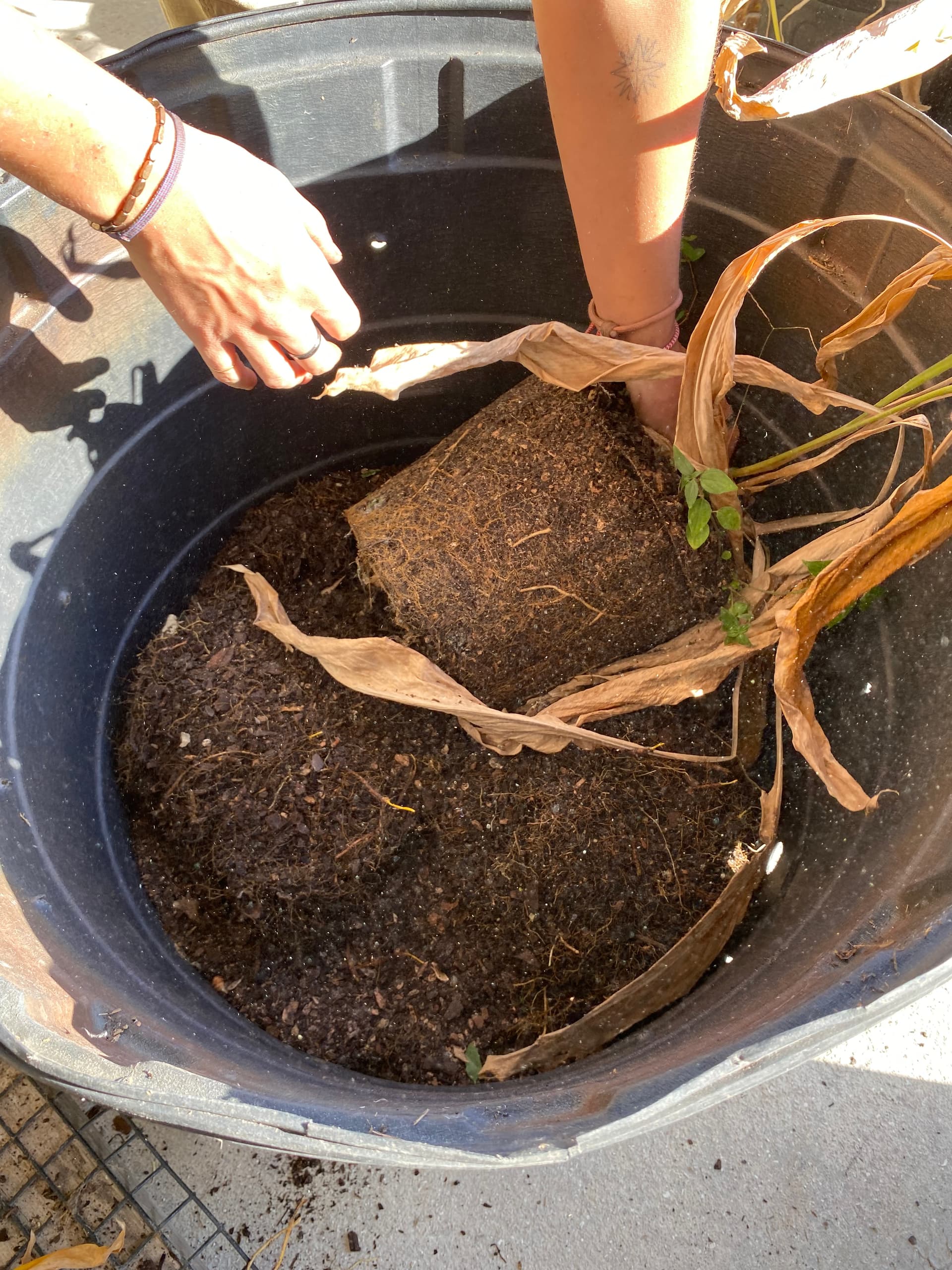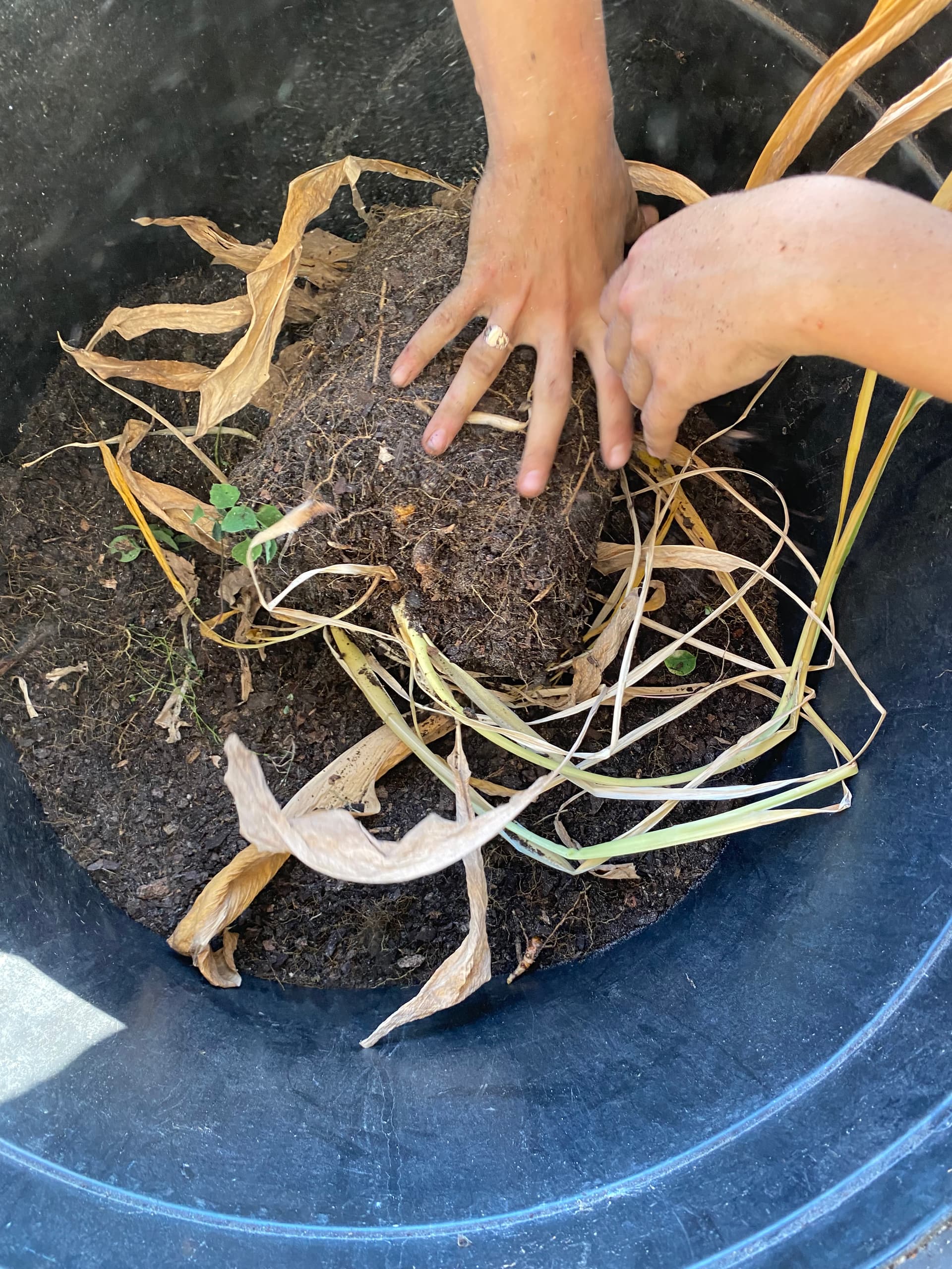 We pulled the plants from their original pots and gentle removed the soil from around the clumps of Turmeric.