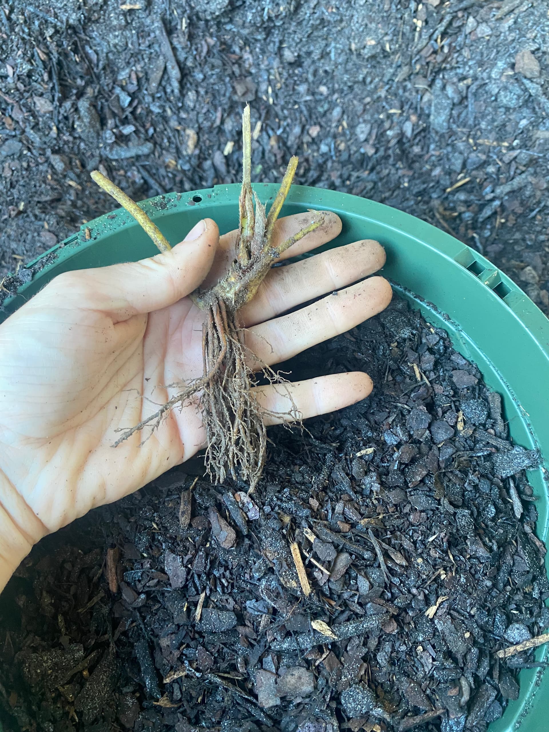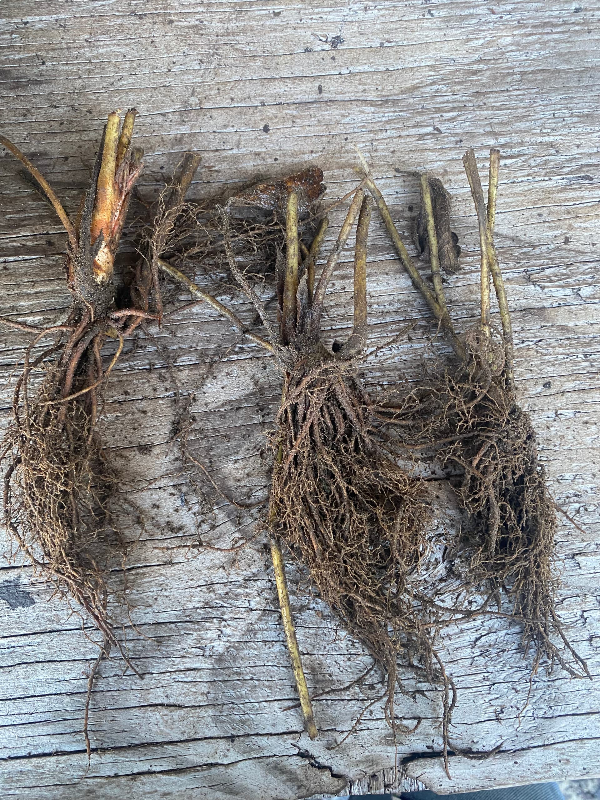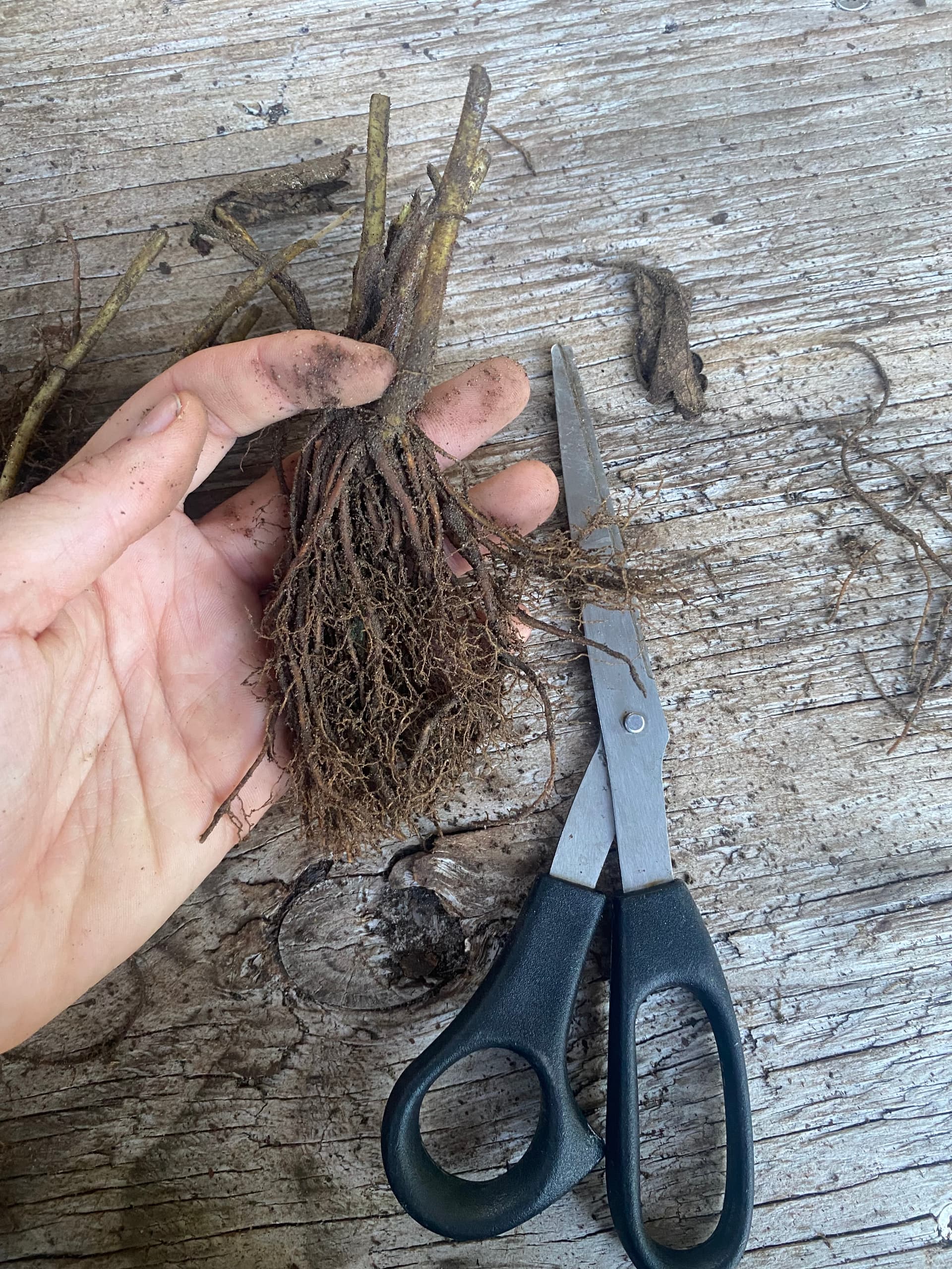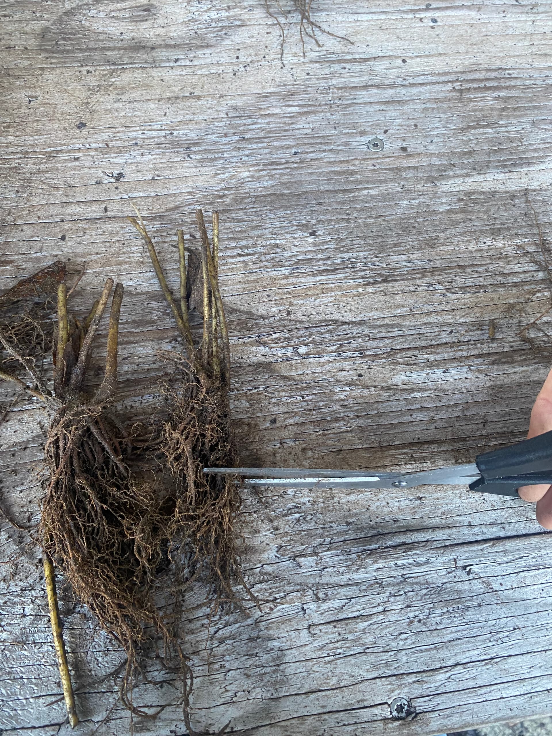 Trim the roots to make it easier once planting them. At this point it is also good to remove any rotting plant material from the stems.