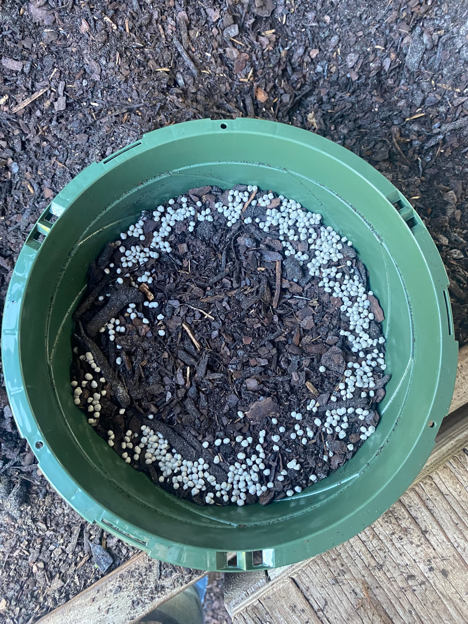 Add your choice of fertilizer around the edge of the pot.
