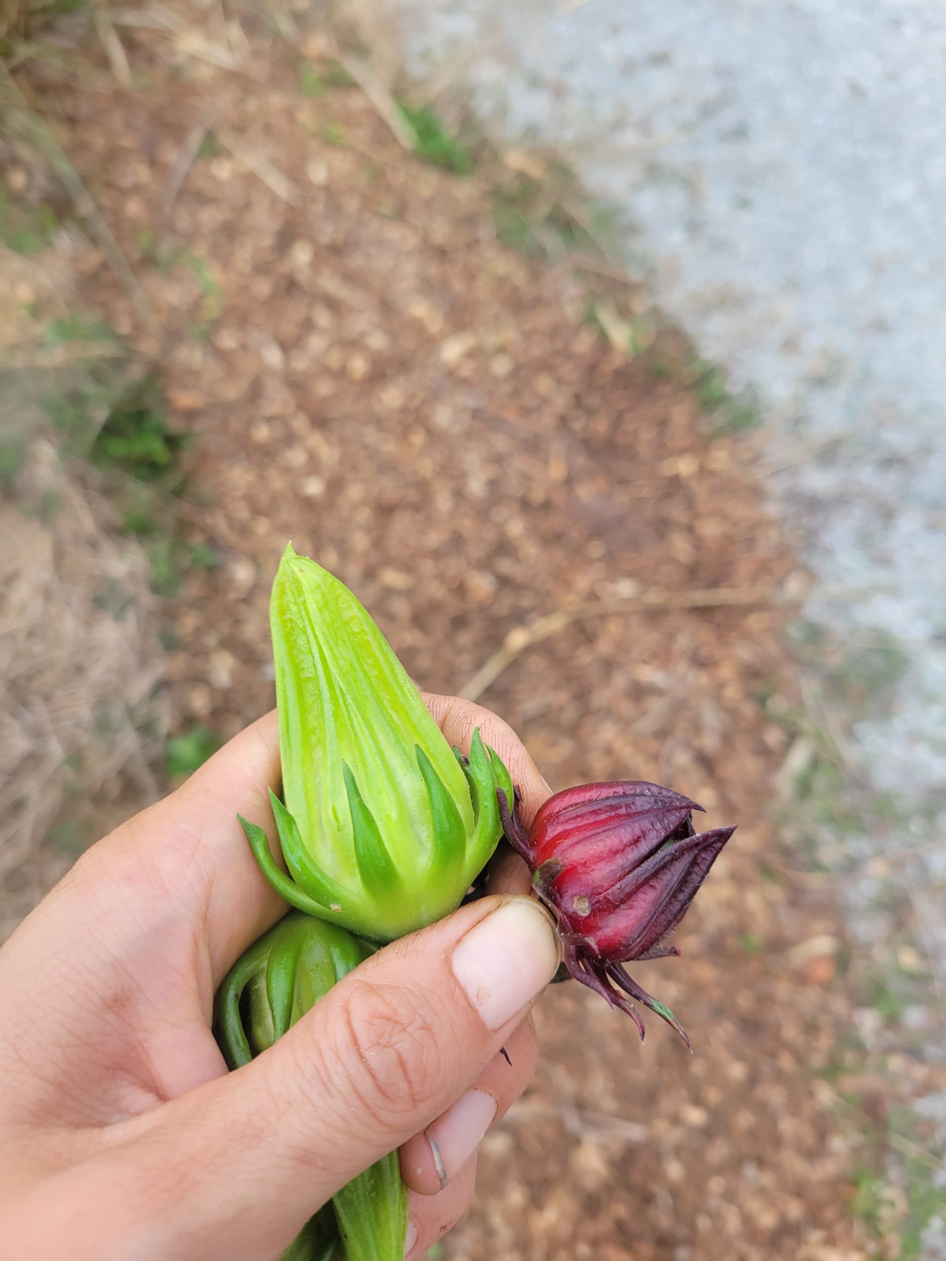 The red variety sampled had a crisper and slightly sweeter calyx, whereas the green is a bit more succulent and tart. You can see the comparison below (bear in mind the red variety came from a much smaller and less healthy plant, which explains the size differential)