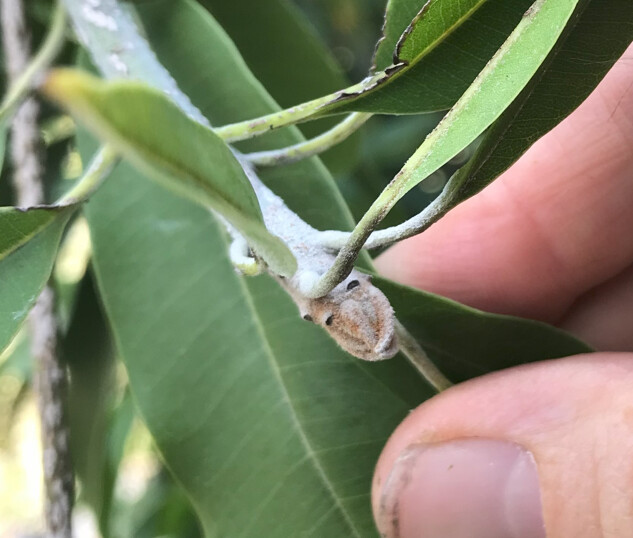 Below are some images of ideal budwood. All the leaves surrounding the bud are hardened off. The bud is full, but none of the “fingers” (future new leaves) have started to open. The bud is still slightly fuzzy and reddish.